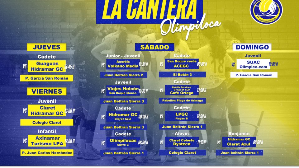 Nueva jornada para LA CANTERA (21 al 24 Noviembre)   JUEVES Cadete: CV Guaguas vs Hidramar GC (Pabellón García San Román – 16:45 h) VIERNES Juvenil: […]