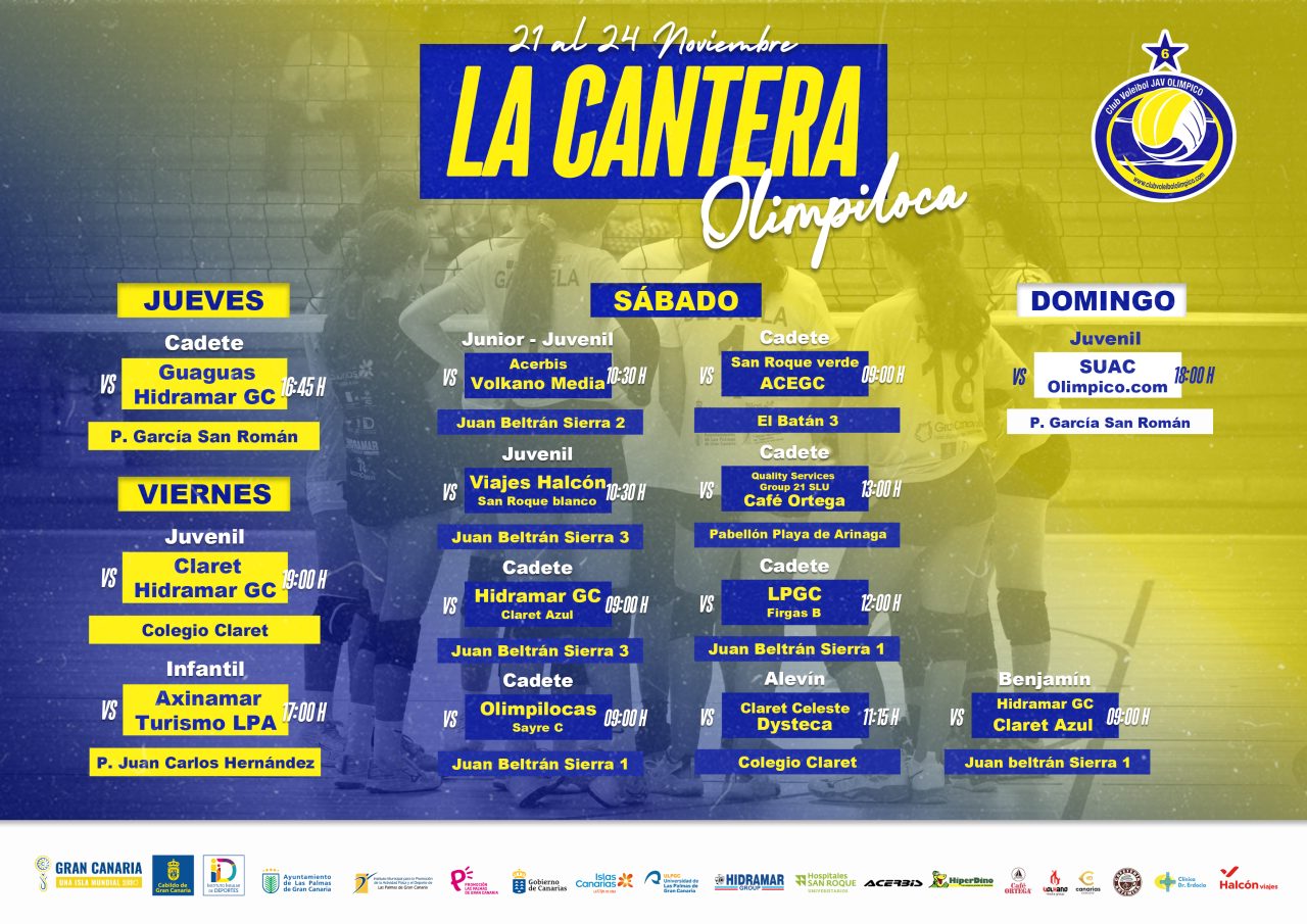 Nueva jornada para LA CANTERA (21 al 24 Noviembre)   JUEVES Cadete: CV Guaguas vs Hidramar GC (Pabellón García San Román – 16:45 h) VIERNES Juvenil: […]