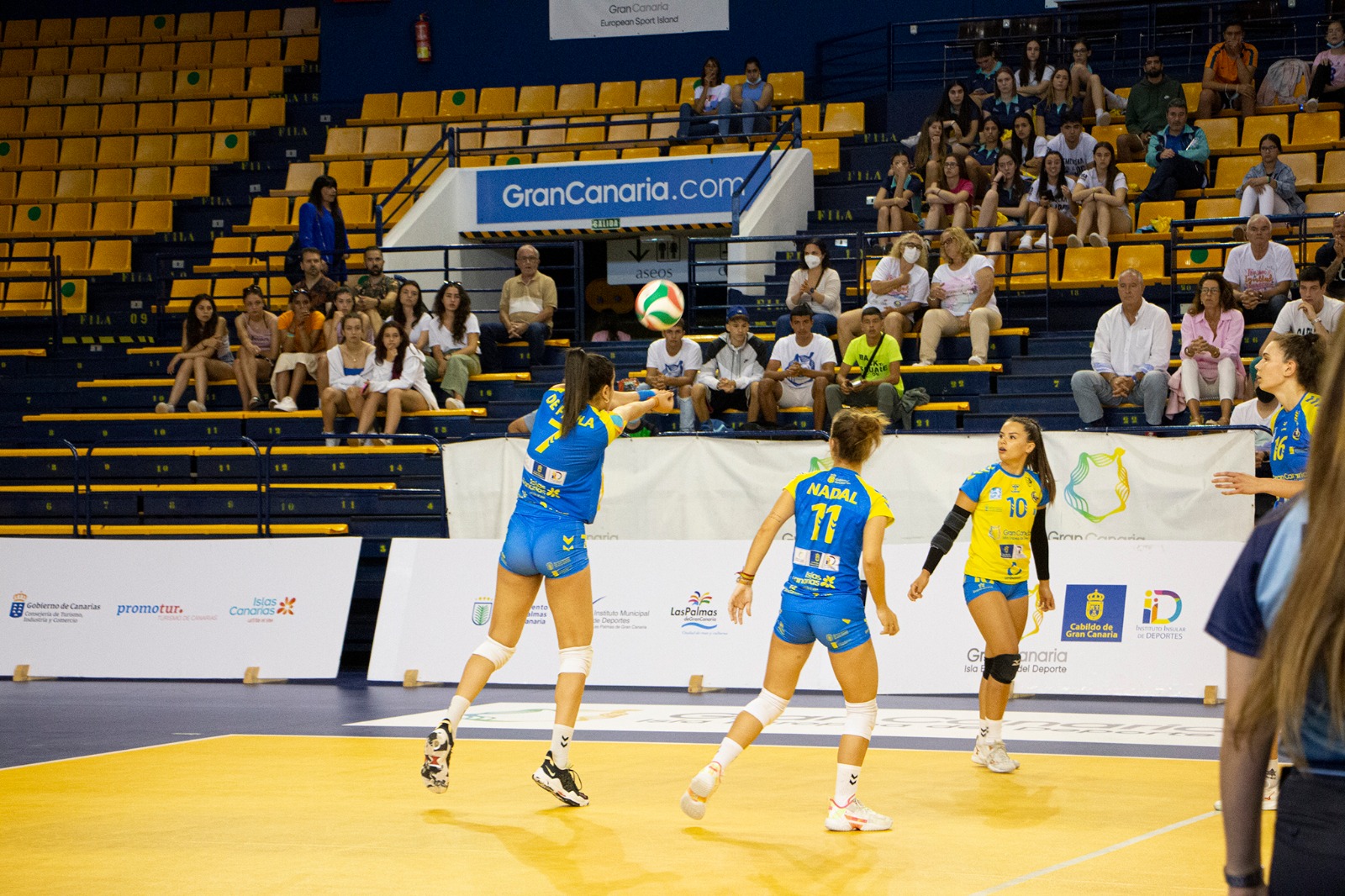 El inicio fue complicado para las grancanarias que encajaban tres puntos seguidos (0-3). Julia de Paula abría el marcador para las amarillas. Los bloqueos habían sido quebradero de cabeza de las insulares, y seguía siéndolo (3-5). El CCO 7 Palmas tiraba de coraje para seguir luchando por la victoria hasta el final (4-8).