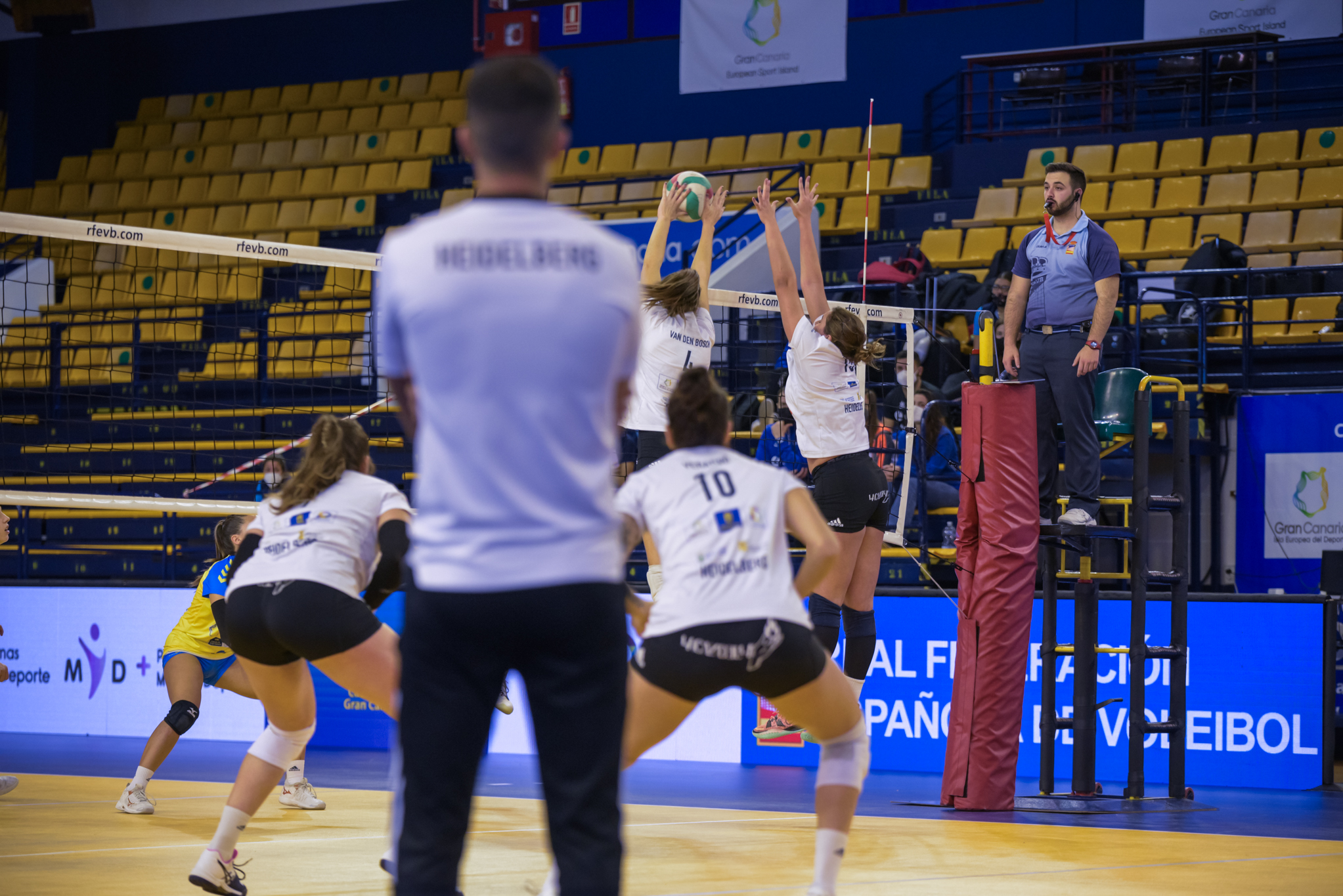 7 Palmas apretaba el marcador con Raquel Montoro asumiendo la responsabilidad en ataque y Santi Guerra tiraba de tiempo muerto con 22-24 para intentar amarrar un set que se complicaba en su recta final para el Heidelberg.