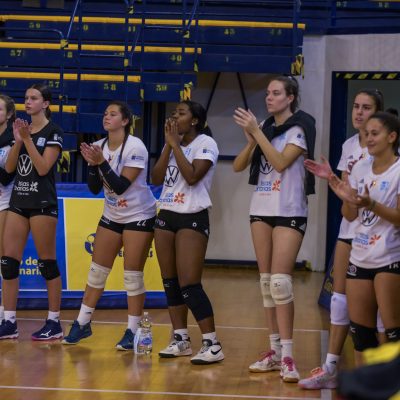 CV CCO 7 PALMAS URBASER 3 (29-25-25): Elena Hernández, Lucía Varela (11), Ariadna Priante (4), Julia De Paula (12), Wivi Gadelha (10), Raquel Montoro (24) y Andrea Arocha (L). También jugaron: Cristina Erdocia (1), Fatou Diop.