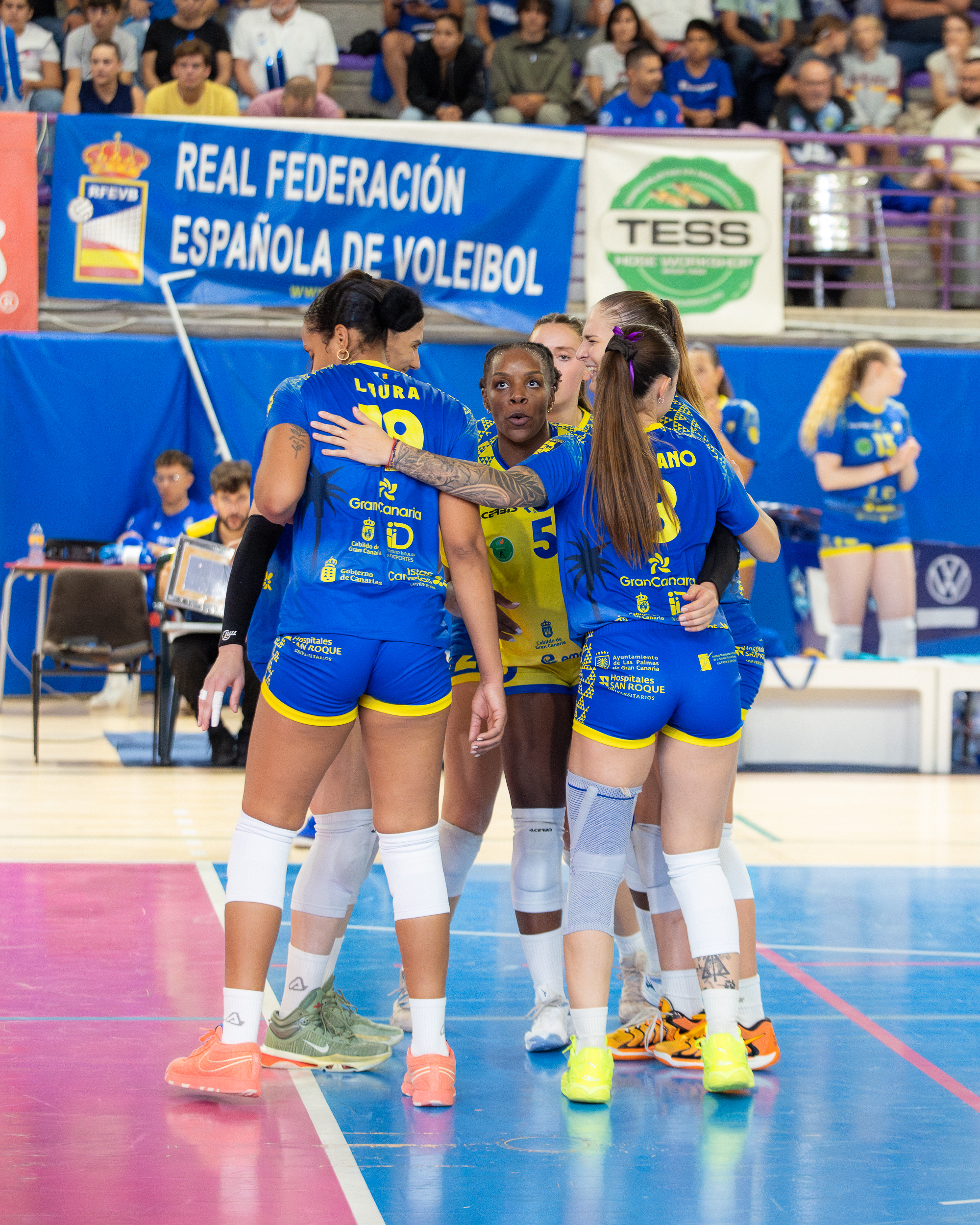 Tenerife Libby´s La Laguna (2): Rosalía Hnatyszn (16), Margalida Pizza (líbero), Emily Zinger (11), Jéssica Akamere (10), Guadalupe Fortuna (19), Yeisi Paola Soto (11) -inicial-, Grace Pelland (4), Carolina Camino (1), Nada Essayadi (x), Lidia Olguín (x) e Itziar López.