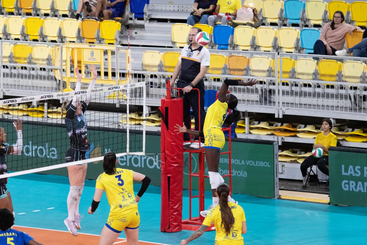 El equipo de Juan Diego, entrenador jefe de las grancanarias, no quiso perdonar y retomó el ritmo inicial (20-15). Saray Manzano, con una gran ofensiva, aumentó aún más la diferencia (23-15). Y Brown bloqueó para terminar de decantar la balanza a favor de las ‘olimpilocas’ en el primer parcial (25-15)
