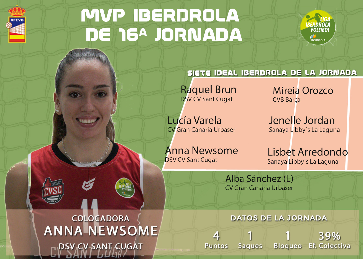 Lucía Varela y Alba Sánchez representan al CV Gran Canaria Urbaser en el 7 ideal de la 16ª jornada de la Liga Iberdrola